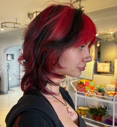 We specialize in alternative hair colors and creative cuts, providing a safe space for all. Our stylists are trained in the less conventional and the more intricate. We strive to create an environment that embraces the strangest ideas and expressive people.